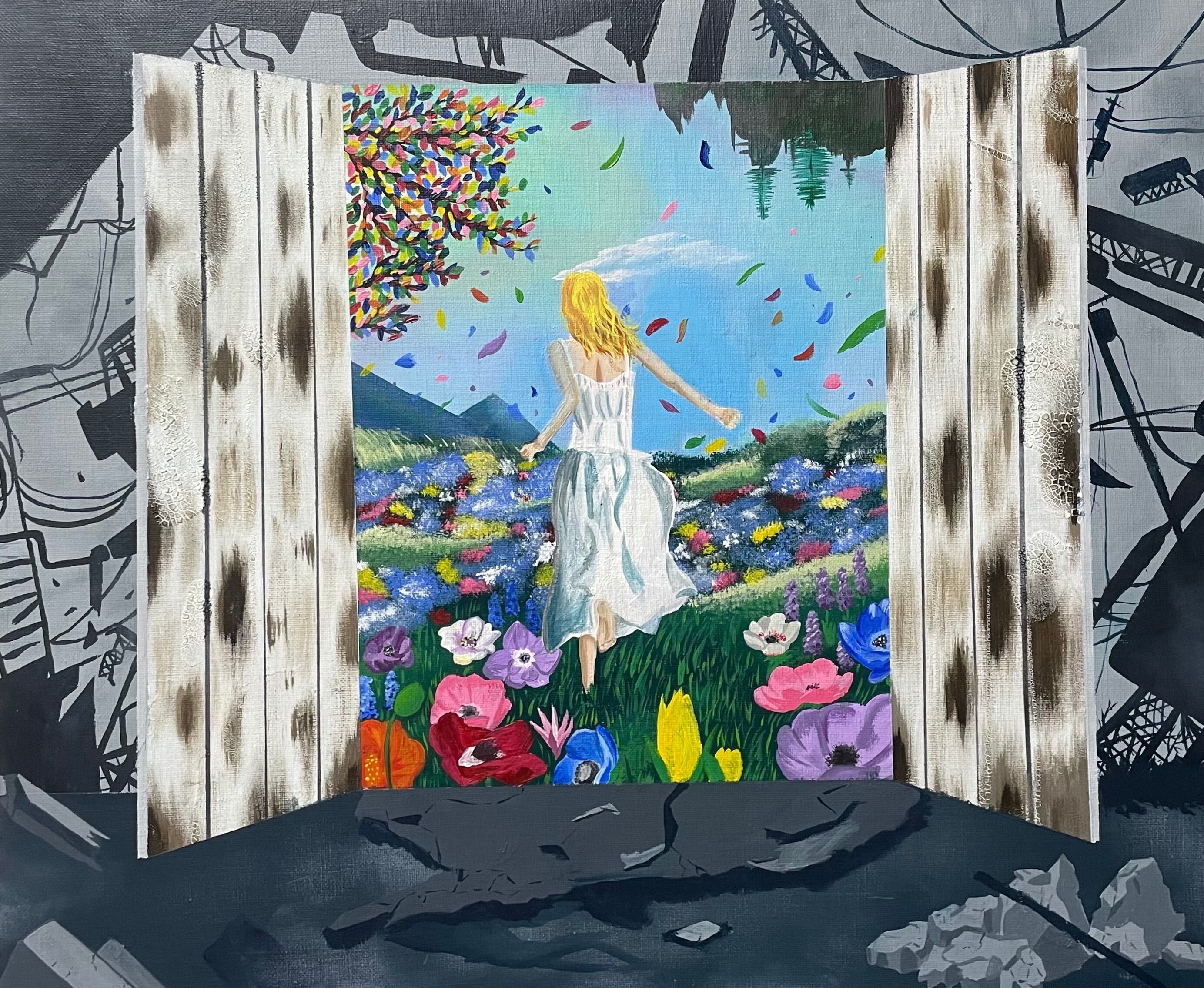 女性 楽園 花畑 ドア ディストピア